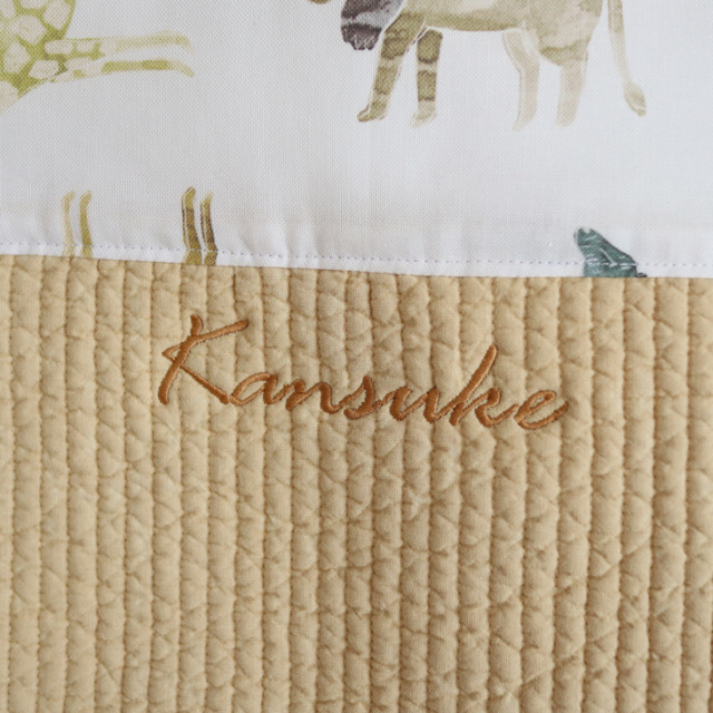 綿100%のコットン生地で中綿を挟み、0.7cm間隔のキルティングスティッチを施し、ややしっかりめの手ざわりが特徴です。