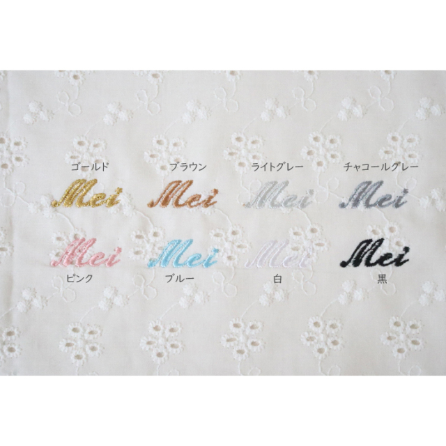 簡易的になりますが、フォント仕上がりイメージをお送りいたします。事前にお問い合わせ下さい。刺繍カラーにつきましては商品ページをご参考下さい。