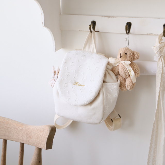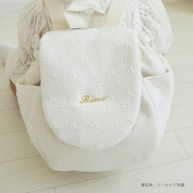 どのリュックもとても可愛らしく迷ったのですが、お花のレースが可愛いこちらに決めました。 名前の刺繍も外で使ってもらってもいいように、はっきりした色でなくライトグレーにしました。 結果、お花のレースと刺繍の色がとても合っていて、上品に見えます。 しっかりした作りなので、長く使ってもらえそうです。 発送も早くて助かりました。 また機会があれば購入したいです。 お店からのコメント |