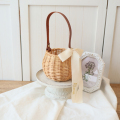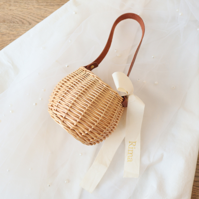 天然ラタンの風合いと、フェイクレザーの持ち手が上品さをプラスしています。