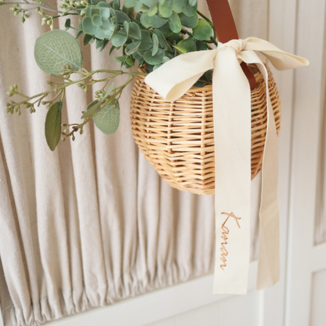 リボンにはお子さまのお名前刺繍を入れることができ、世界にひとつだけの特別なアイテムに。