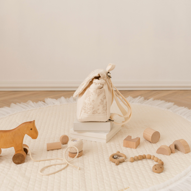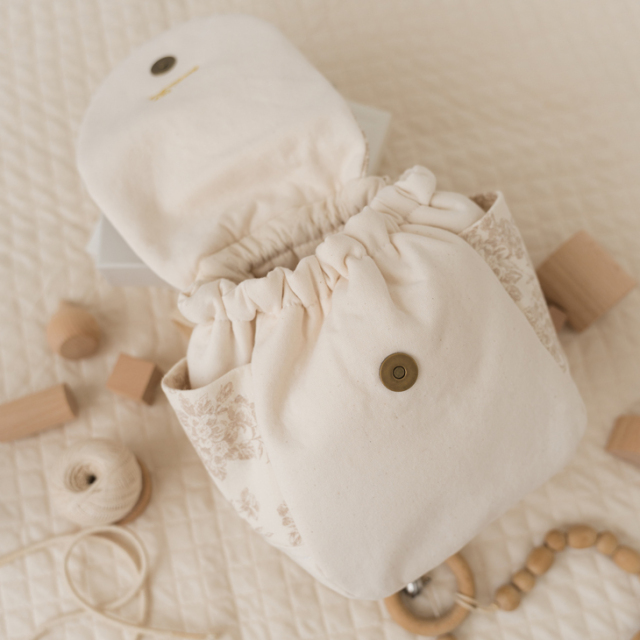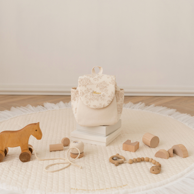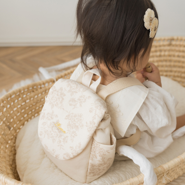 やさしいベージュトーンと上品な花柄が