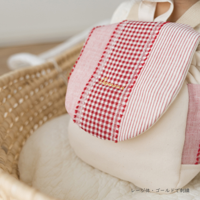 ※リュック本体のカラーと刺繍カラーの組み合わせによっては、お名前刺繍が見えにくくなることがあります。ご心配な方は、「テープに刺繍」をご選択下さい。
