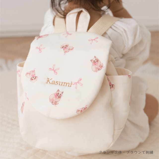 ※リュック本体への刺繍をご選択の場合テープは付きません