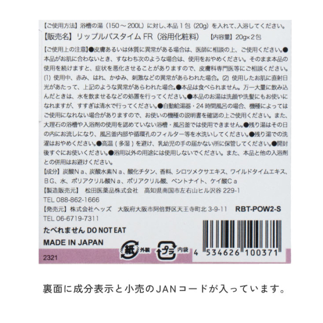 babyRotaco HOMEその他 リップルバスタイム 2types 入浴剤 ママへのギフト 価格: ¥880 (税込) [ポイント還元 8ポイント~] 販売期間: 数量: 個 種類をお選び下さい在庫購入アイリス(ブルー)○ フリージア(ピンク)○ 種類をお選び下さい在庫購入アイリス(ブルー)○ フリージア(ピンク)○ 返品についての詳細はこちら レビューはありません 出産祝いと一緒に頑張ったママへプレゼント 名入れ刺繍について ギフトラッピングについて