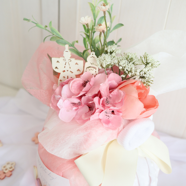 おむつケーキを使用した後でもブーケは飾ってご利用いただけます。