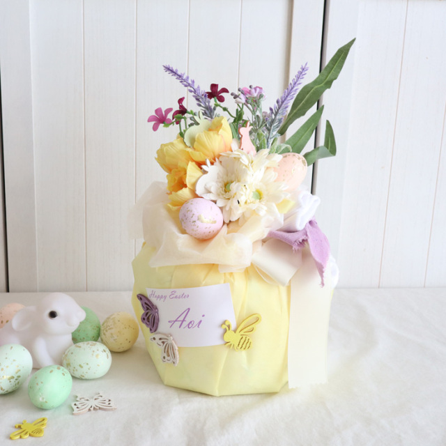 イースター限定フラワーブーケ1段おむつケーキ。送料無料。[営業日朝10時までのご注文で当日発送]