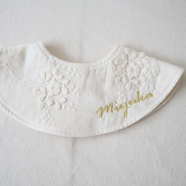 お名前刺繍入り・まあるいスタイ・立体的な花柄刺繍が美しい
