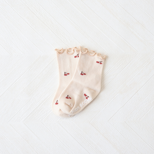 くすみカラーとチェリーやフラワーがかわいいベビーソックス。